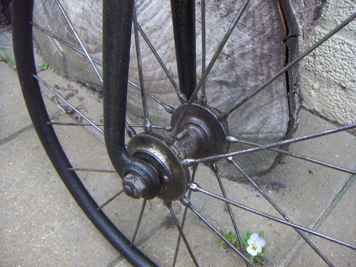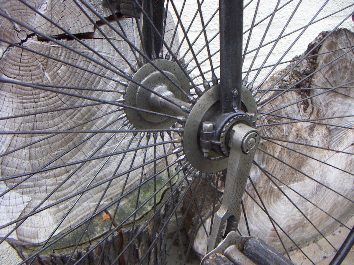 If one crosses your way one day (which is possible because they were very successful and quite a number have survived) it should be easy recognisable. The brake lever is typical for CMC and look at the short story written on the hub flange. But watch out: these marvellous bikes were built under license, for instance by Seidel & Naumann, Opel, Heinrich Kleyer (the later 'Adler' brand) and Peugeot, which gave it the name 'Le Français'. Thanks Maarten Waarlé for the pictures of this bicycle.